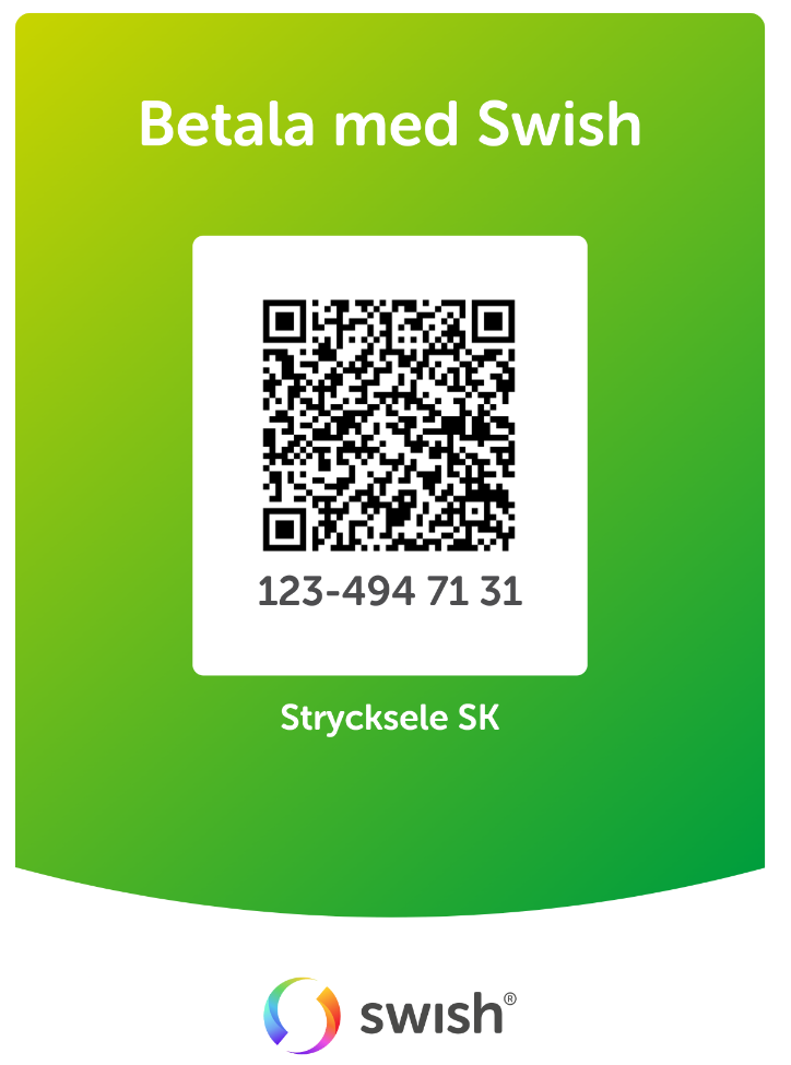 - Betalar du via Swish använd gärna nedan QR-koder. .